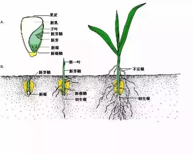 水、溫度、氧氣是種子發(fā)芽、出苗的三個最基本條件。玉米種子由兩部分組成,一部分是將來長成植株的“胎兒”, 名稱叫胚;另一部分是供“胎兒”長大的營養(yǎng)物質,名稱叫胚乳。